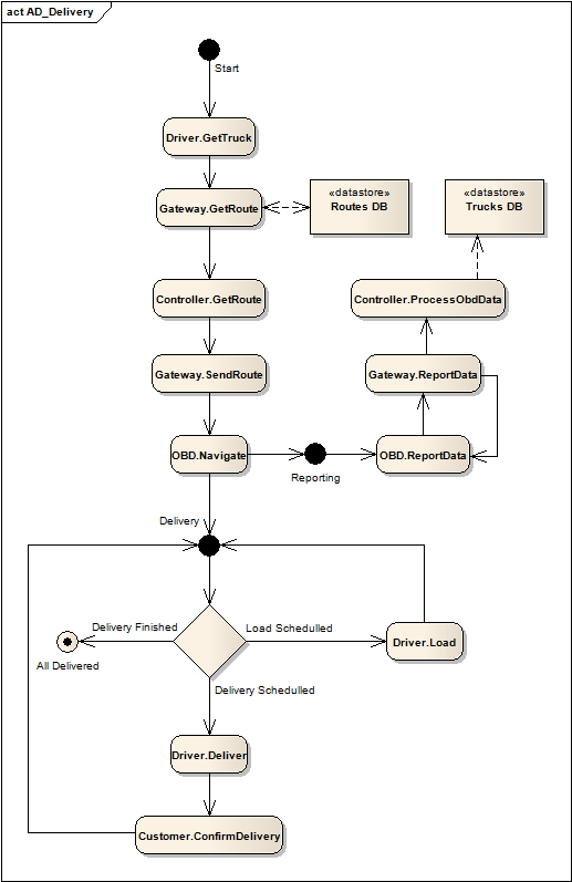 Tento diagram ukazuje, jak probíhá vyřizování objednávek z pohledu řidiče/jeho OBD.